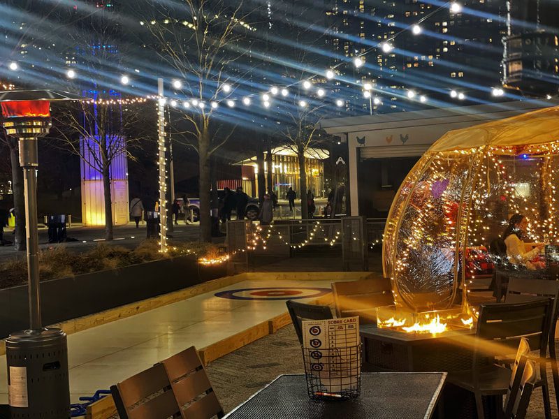Complete with a fireplace, leather seating, and cozy rustic touches throughout, Lakefront Lodge is the perfect venue for private parties and group gatherings looking for a relaxing but interactive experience. Guests are invited to stay warm inside sipping on specialty beverages & enjoying tasty bites or grab a blanket to bundle up and have some fun on the patio featuring a private curling rink, heated igloos, and firepits. Want to delight your guests even more, add a Private Whiskey Tasting, S’mores Kits and a Hot Chocolate Bar.