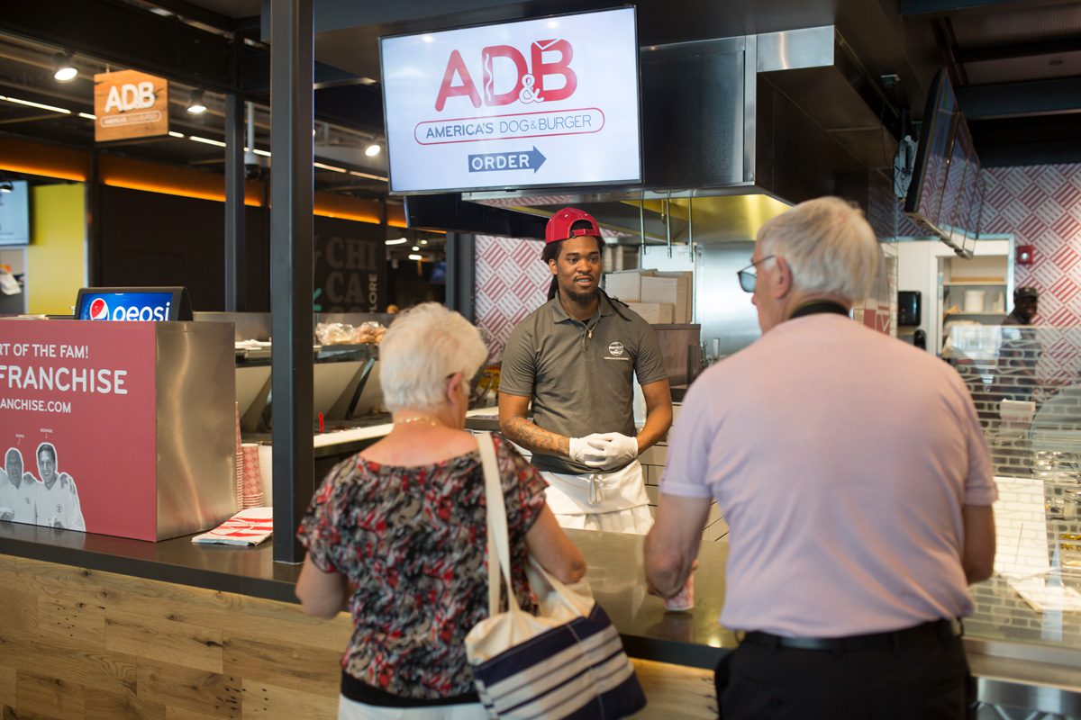 AD&B serves up a variety of burgers, dogs, chicken & salads featuring 7 different freshly grilled 100% Black Angus beef & turkey burgers, classic Chicago style hot dogs as well as other hot dog bites, grilled chicken sandwiches and salads.